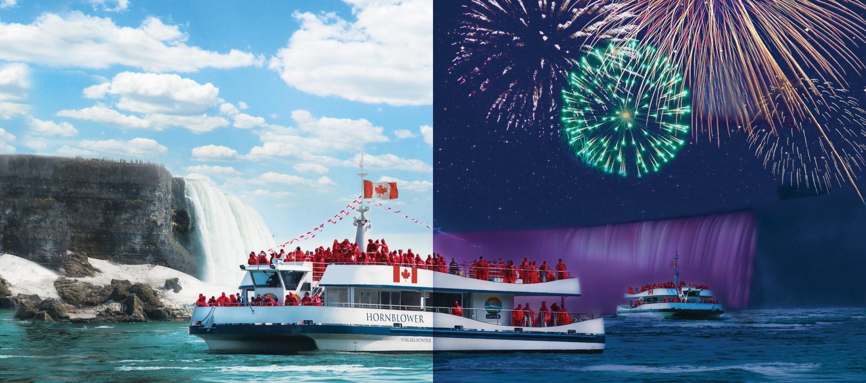 Enhance your visit with the Falls Fireworks Cruise, offering the best views of the Niagara Falls fireworks display. Sail under starry skies and capture breathtaking photos of the illuminated falls, vibrant skyline, and spectacular fireworks—an unforgettable highlight of any Niagara itinerary.